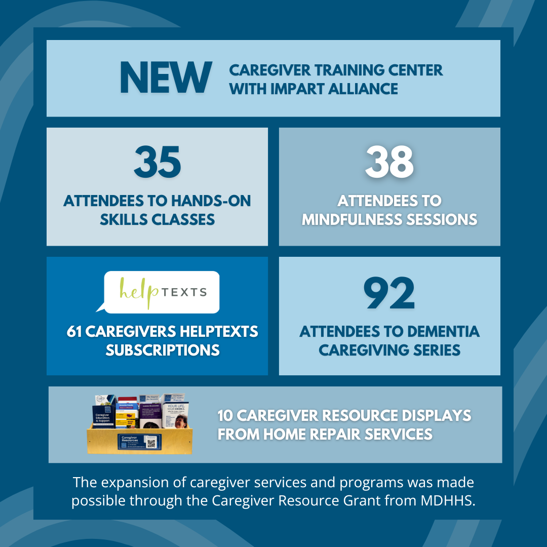 The Area Agency on Aging of Western Michigan (AAAWM) is proud to share how grant dollars are making a real difference for caregivers across our region. Through support from the Statewide Caregiver Resource Grant administered by the Michigan Department of Health and Human Services (MDHHS), we’ve been able to launch new initiatives, expand trusted partnerships, and make caregiver resources more accessible for our region.